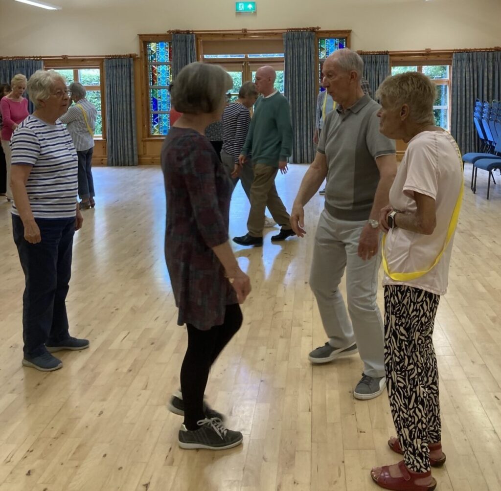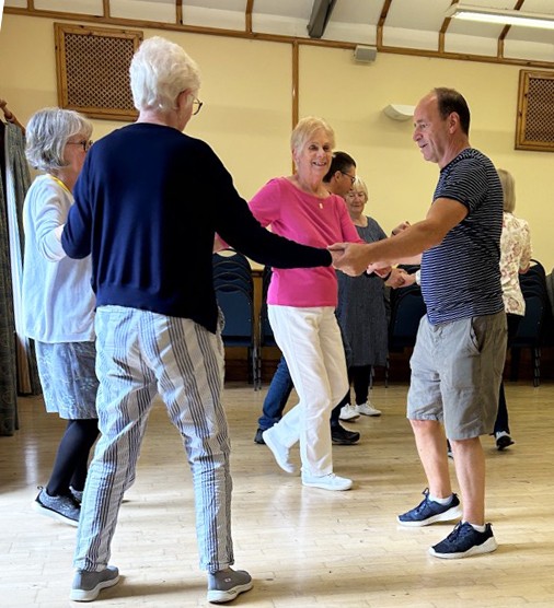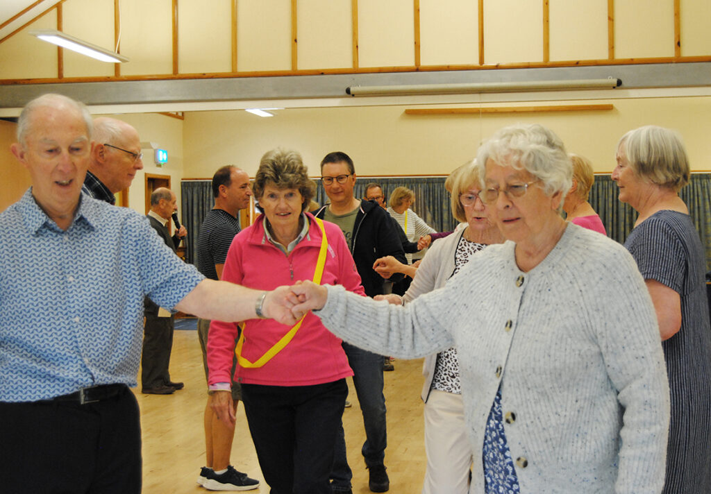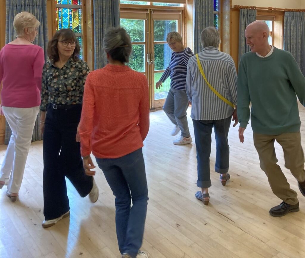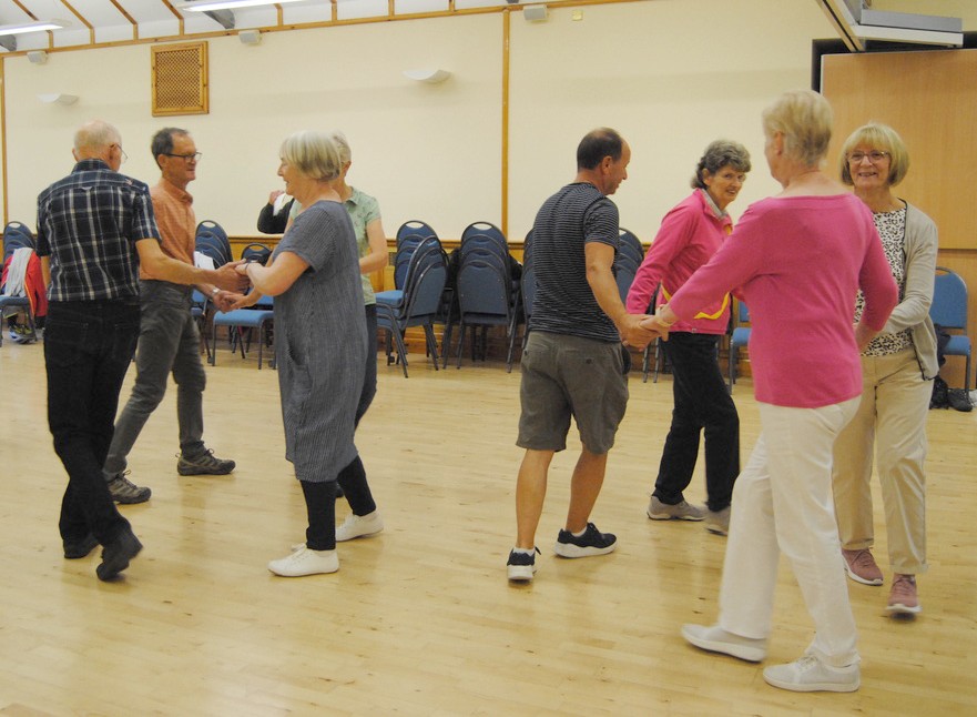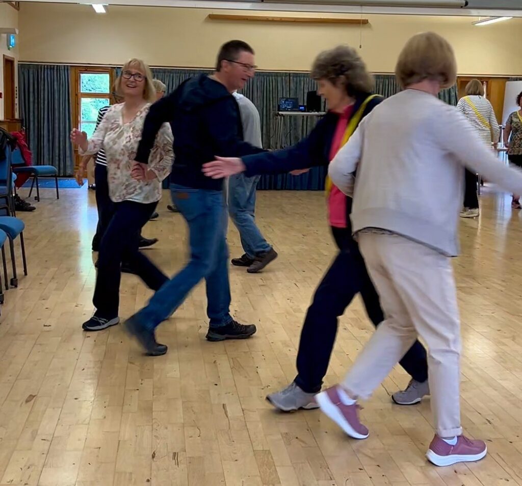 Dances are selected to best suit the numbers present and people’s abilities. Explanations are given for all dance moves and dance formations. Recorded music is used with the ability to reduce the speed as necessary.