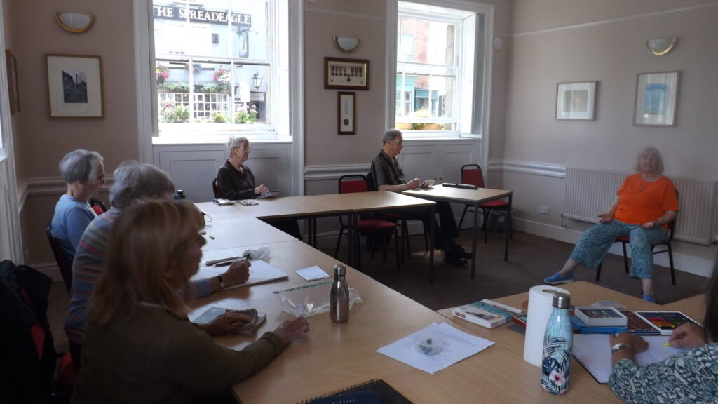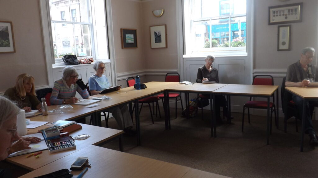 The Life Drawing group provides an opportunity to sketch people from life. Members take it in turn to pose, fully-clothed, while the rest of the group draw them. Poses are usually held for around 20 minutes and some members concentrate on the face while others try to capture the whole body. There is no tuition and the group should not be regarded as a class. Neither is there any pressure to share work with others. However this is a friendly mutually supportive group and members encourage each other's efforts.